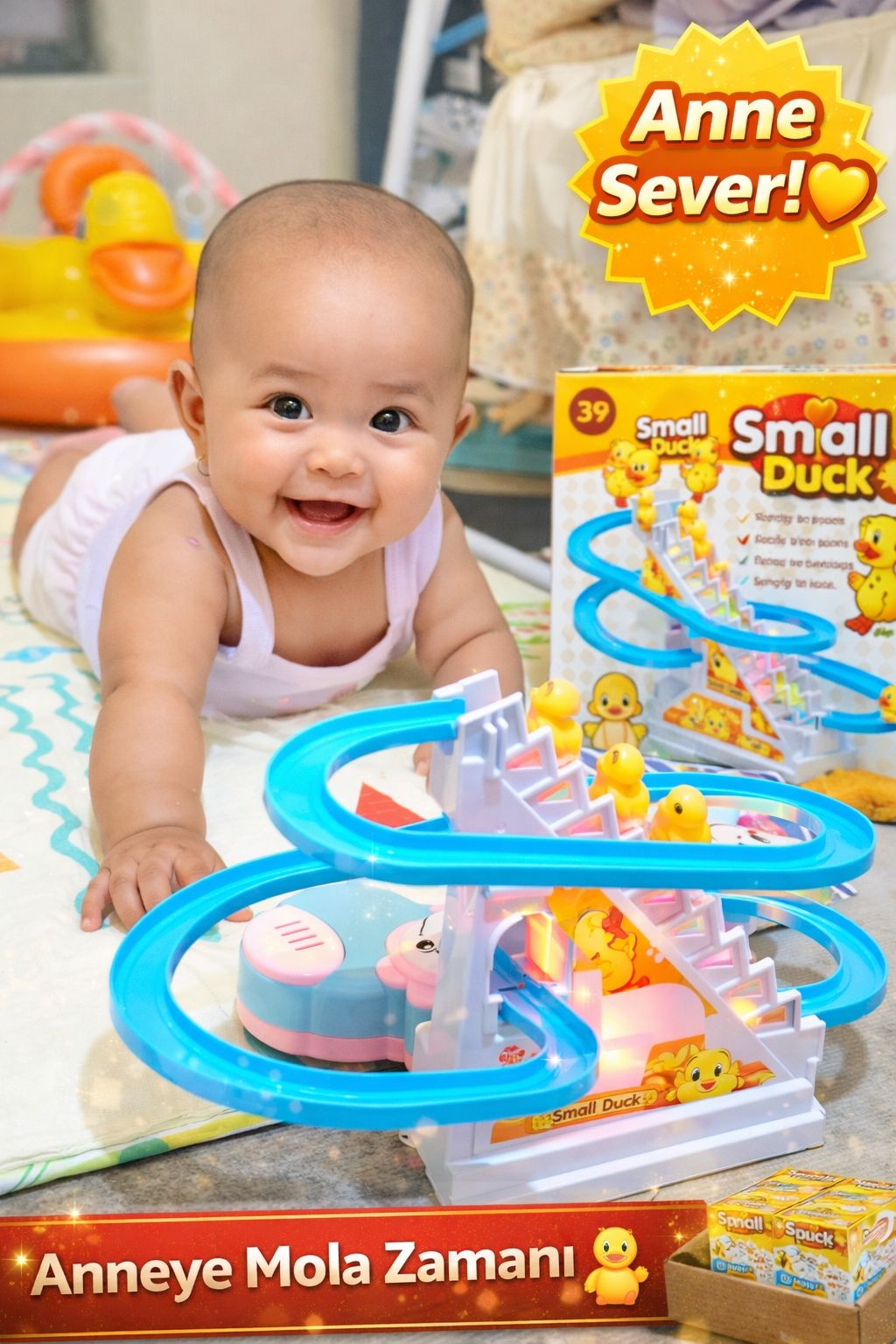 🐥 Çocukların yeni favorisi Small Duck ile eğlence zirveye çıkıyor! 🎢 Sevimli ördekler kendi başlarına merdivenleri tırmanıyor, pistten kayarken neşeli şarkılar söylüyor! 🎶 Hem ışıklı hem müzikli bu büyüleyici pist, miniklerin el-göz koordinasyonunu geliştirirken yüzlerini güldürüyor. 🎁 Sevdiklerinize unutulmaz bir hediye vermek için hemen sipariş verin! ✨